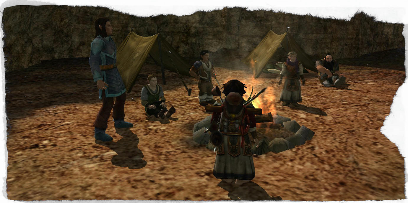 I was the first one of us to wake up and at first and, being still dazed, I was not quite sure where we were as I stared the stone walls around us (ancient and worn but still secure). The ceiling was very high and next to me there were the other hobbits sleeping on their bed rolls, covered by blankets and there were also tall people in the same room resting, and that little campfire that kept us warm through the nights. Ost Guruth the Fortress, our mighty shelter in the middle of the wilderness.