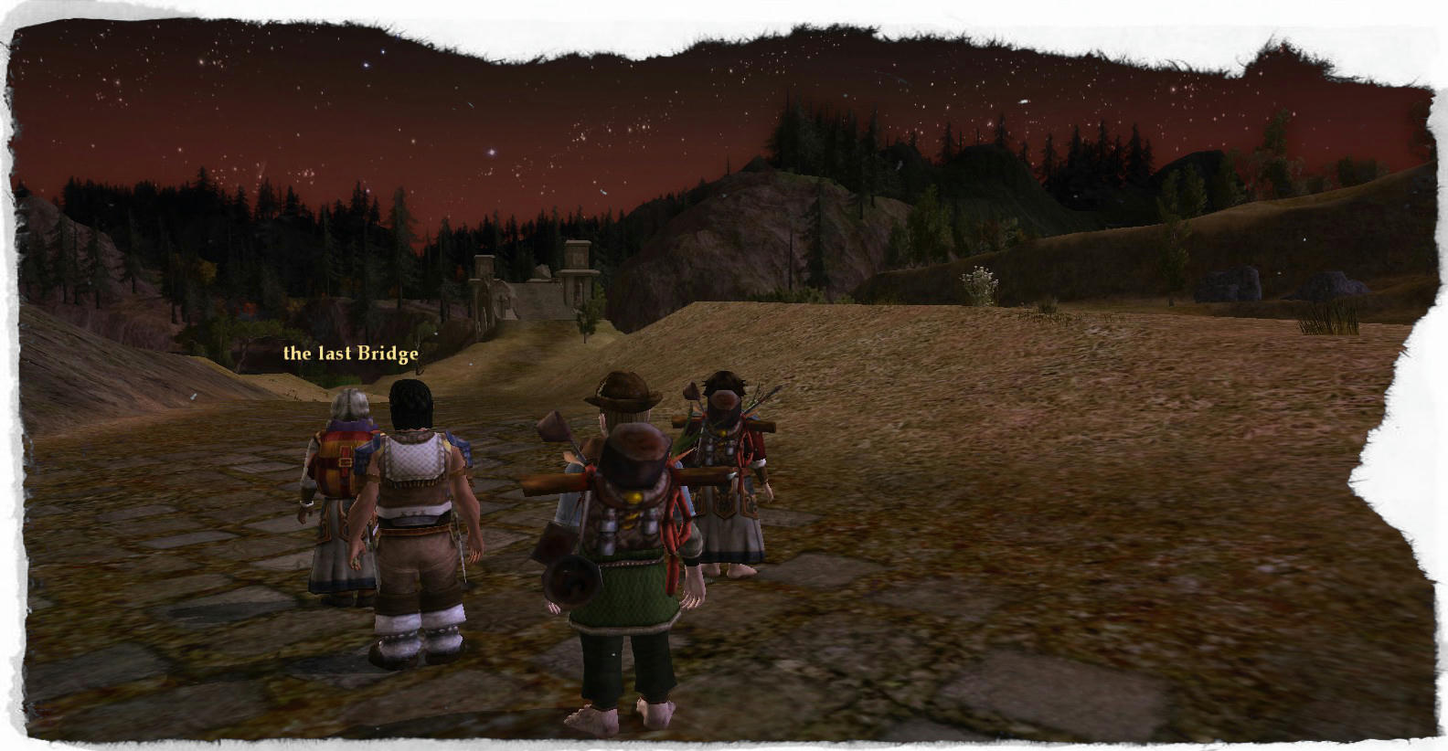 However, our amble did bear fruit. We reached the waypoint called "The Last Bridge", most ominous name for a bridge, only tall people could come up with something like that. Why couldn't it be called simply "Trollies' Bridge" as it was leading to the Trollshaws or even something fancier. Who knows if that was their way to allure guests to their lands. I hope that was only some odd Elven humour.