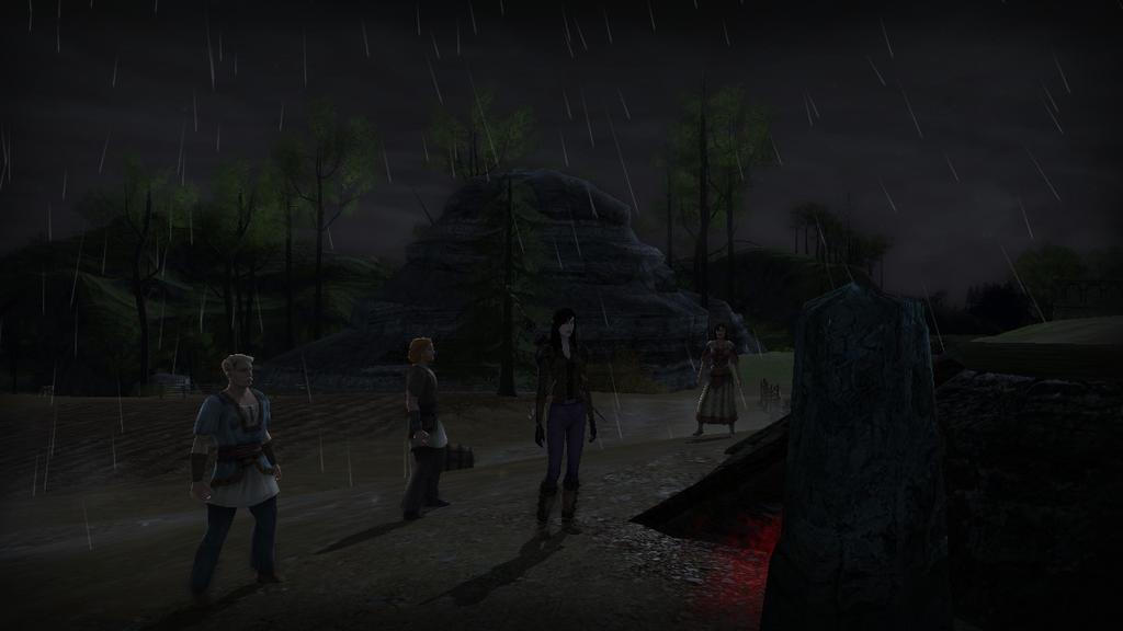 Whilst traveling, Laraioth goes to the North Downs, where the people are hesitant towards a stranger but eager for any assistance against the orcs in the lands. She comes across a burnt down farmhouse and a mysterious relic beside it emitting a red substance. Laraioth keeps her distance from the strange stone, unsure of what it means. Perhaps she will find answers from the elves.