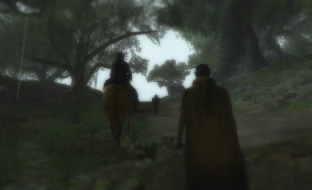 A heavy rain slows their progression, filling the forest with a stifling pressure.