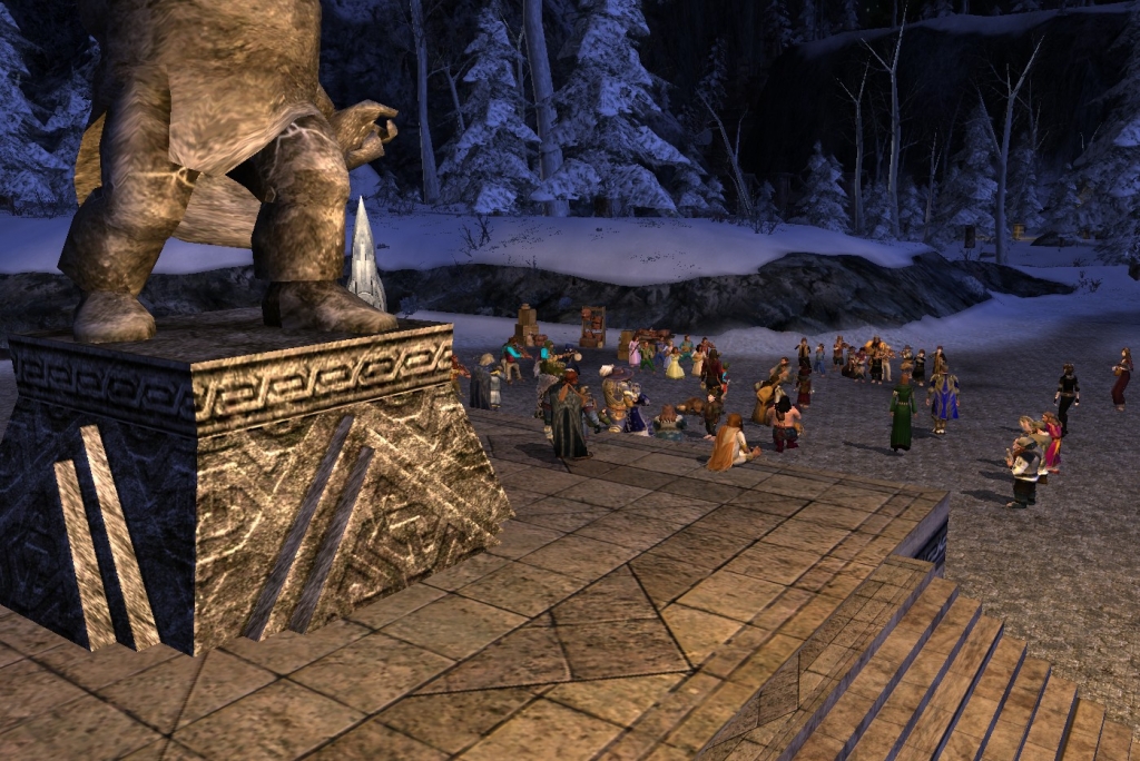 Every week, east of the statue at Frerin's Court, performers of all races from all over Eriador and beyond come to perform beautiful music! Come and listen, dance, or make music!