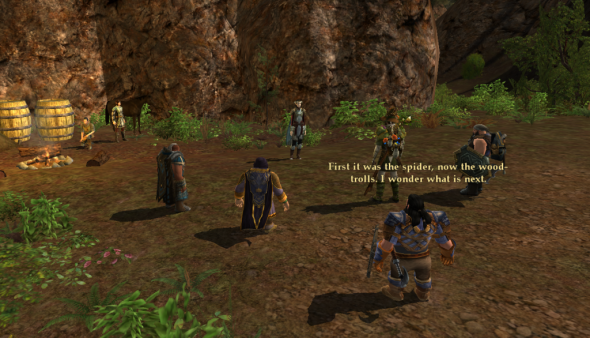 The expedition to Moria is narrowly rescued by the elf Lirisseya from a wood-troll ambush. She led them to the safety of a scout camp, but they had to run for their lives. The Dwarves of Durin's Folk are getting quite tired of dealing with the countless dangers that lurk in these woods.