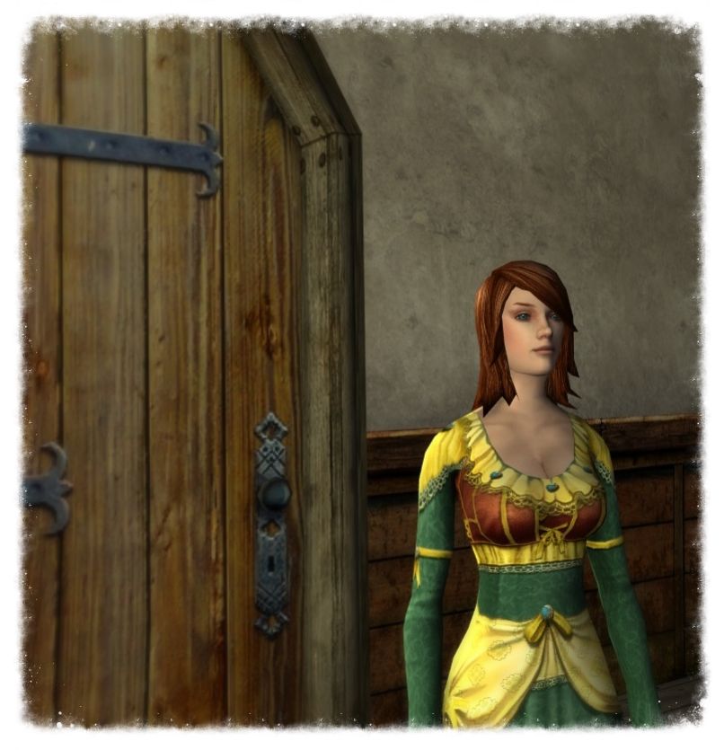 Her captors made attempt to make sport of her and conceal the reason why she had been taken. The hobbit, whom she recognized as the Fryer Tukko told her that Scarlock had arranged it. All three spoke at once and their stories weaved and conflicted, they made mention that the poisoner had wished her away, they even told her that her own father Captain Hardoleth had ordered this because he held hatred for her.