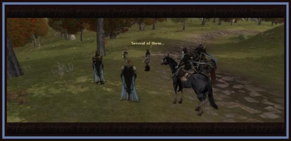 The banner begin their journey southward, their black and blue warband cloaks and  distinctive black favoured armour making them a very obvious sight as they cross the plains.