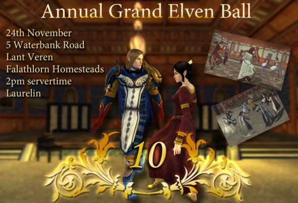 After a DECADE, the Tenth Annual Great Elven Ball awaits you. Please as you have done kindly in the last nine years, consider that this event is aimed to be an elven themed event and every non-elf you bring would make it seem less elven. If you are not particularly invited with your Dunedain, Men, Your Dwarves or Hobbits and if you have a proper elven alt, it would be very helpful to attend with them instead of your mighty humans, dwarf lords or hobbitses. Still it's up to you! (if you want to explain your presence to Veryacano at the gate and to his cold Hammerites)