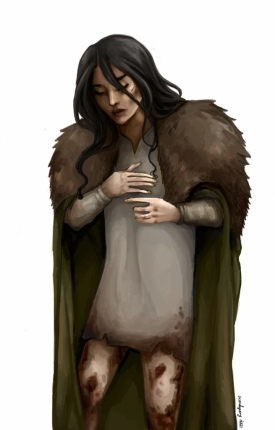 “Cease your bids for murder, you wretch,” she hisses, letting loose a stone across the ground. The heavy thunk where it sinks into the dirt sends a cry of alarm into the air as one crow takes flight; following it are many others, joining in the cacophony of piercing screams as they take into the night sky. The absence of the crows milling around offers her little comfort where she sits, by a cold hearth, acting as the lone warden to a dead man.