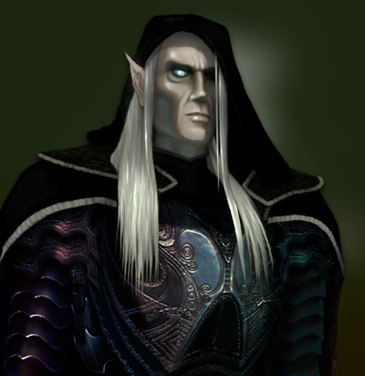 Outward Appearance | A tall, imposing Sindar elf of great age and fell aspect. His eyes are cold and hard and terrible. His skin is ivory pale, his hair is a dusky silver white... His voice is deep and sonorous, lacking the lilting melodic tones more commonly associated with elvish folk. |