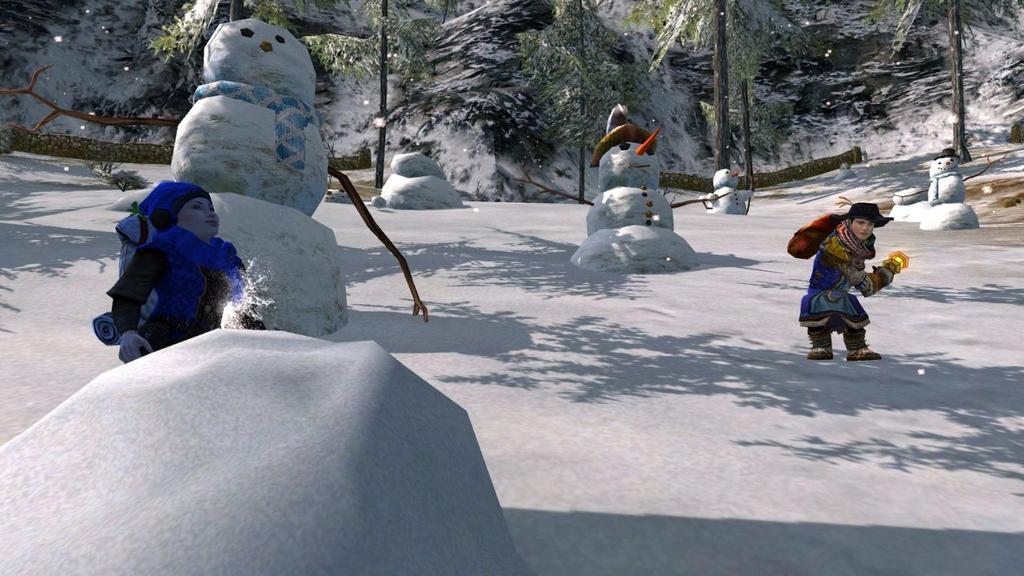 Simbo hits Yllisa with a snowball during the Grand Hobbit New Year's Snowball Fight!