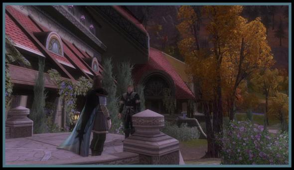 Khalis and Osilivren standing before the home of Lord Elrond in Imladris