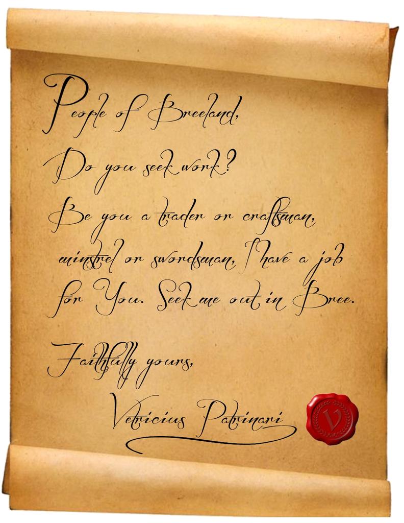 A poster nailed to posts and boards across Bree