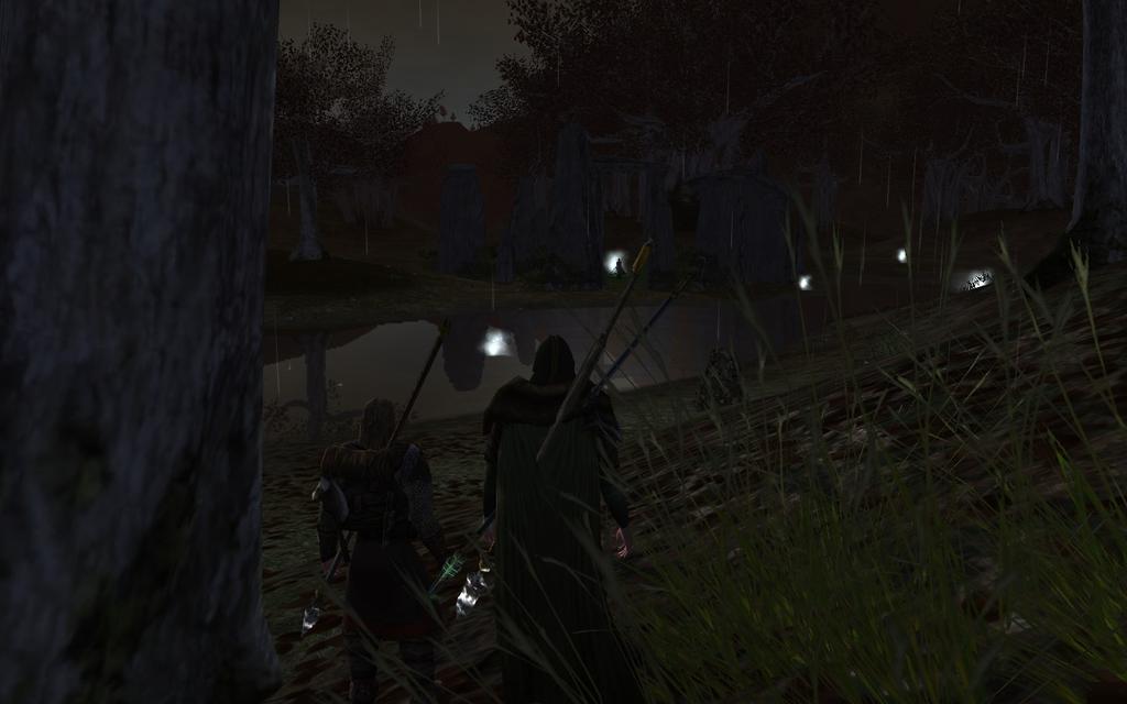 ~~As we ventured forth we encountered a dark forest. The air was thick and there was no sound at all, no bird, no wind, only the footsteps of our company. I saw my brother having the same thoughts, we should not enter this dark place. Yet it was Wulfreda that looked confident to throw herself into the forest, so we followed her. None dared to disturb the silence that ruled the forest. There were lights flowing in random directions as we walked deeper into the forest. I am sure elves should be near, always when unnatural things happen, elves have something to do with it. I felt lost, and my feet hurt of the long walk, yet I dared not to rest in this awful place. Wulfreda walked into a stone circle deep in the forest, such foolish action. The lights stirred and circled around my head. I felt panick rising, as whispers were reaching my ear. The lights whispered my name! What happened next is hard to describe and I do not like to think of it anymore. Fear, not a simple fear, a form of terror and dread that could make any man faint was emitted by the lights. I ran for it..