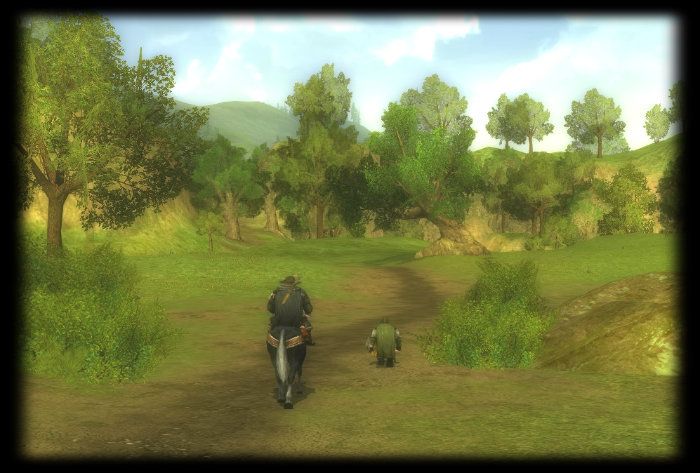 Hilfar dropped the vile creature and looked sideways to the large goblin camp and froze of fear. Hundreds and hundreds of small statured figures were running out of the camp in their direction. When he snapped out of his amazement he ran off the hill towards the goods-laden poney and shouted to Ullfar "Run! Ride! Get out of here!". Ullfar did not understand at first but drew his sword none the less. Hilfar tried to mount the poney which had no saddle, the poney protested under all the extra weigth. Ullfar heard the screams of an approaching goblin army and spurred the poney forward "Follow me son!". Hilfar held on to the manes of the heavy loaded horse which out of instinct followed the other poney. They galloped to the narrow passage which was covered by overhanging trees, Hilfar had a hard time holding on as the poney blindly followed the front rider.