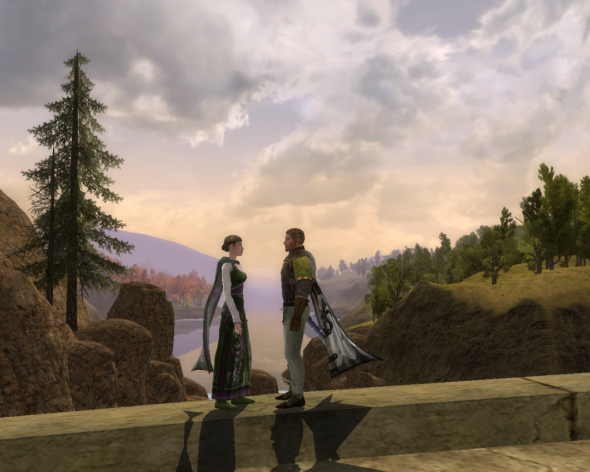The couple enjoys a moment for themselves before crossing the bridge to enter the Trollshaws. A warm calm is in the air and so far, the journey hasn't have complications.