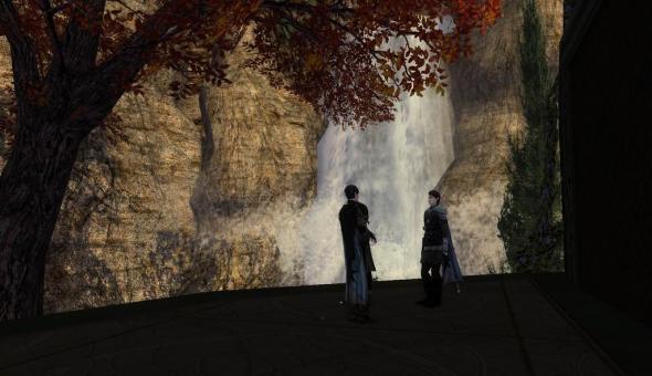 Lilleduil and Faörie converse behind the Last Homely House.