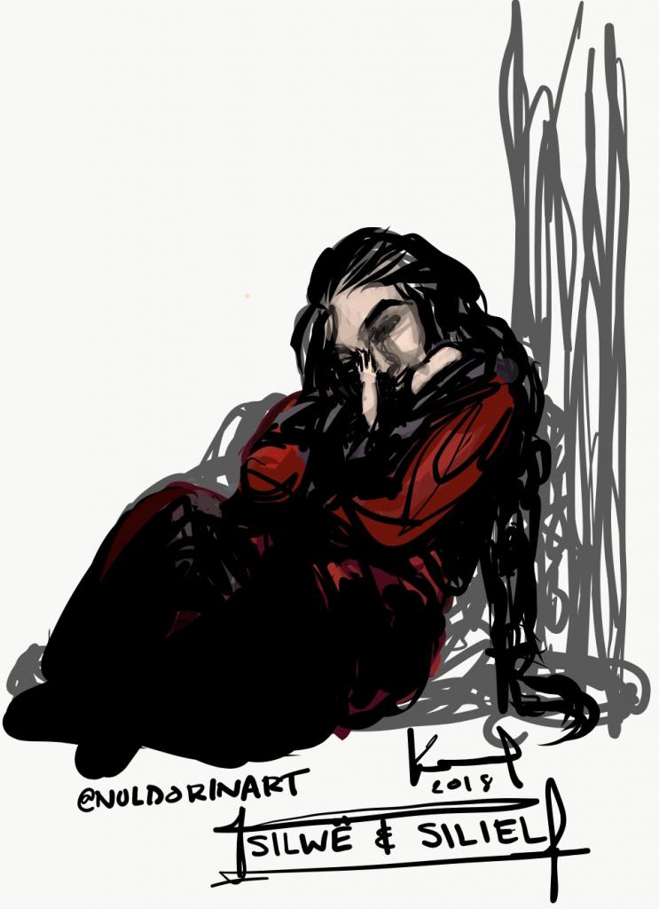 A beaming, joyful Silwë cradles his newborn daughter, Isilime, at the beginning of the Second Age, in Lindon.