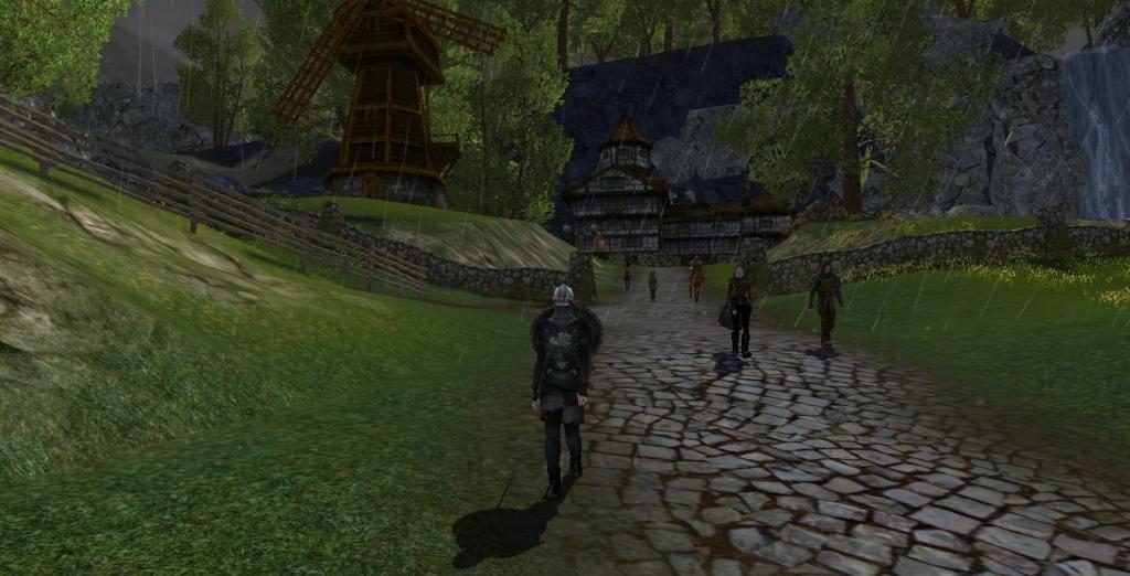 The Black Steel leave The Thirsty Boar for the last time to go get the hired horses they'll be using to travel to Moria for the first leg of the journey. It rains heavily, as it often does in Bree-land.
