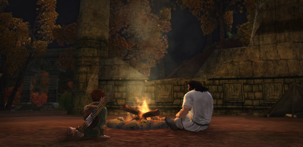 From there we crossed the Last Bridge and made our way into the Trollshaws, the most treacherous leg of our journey. We were immediately hit with a summertime storm and made haste to find dry and sheltered ground, lest our ponies become trapped in the mud. Arlis brought us to a site that the Elves frequent and guard, called the Fenced Place and I think also a ruin of Arnor. I write this from our little campsite, though with some slight difficulty as one of my arms is trapped beneath the dozing Finnric.