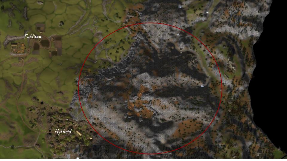 Be advised that the area around Faldham is a level 70 area, meaning it can be very deadly for low levels, but once inside the area where we are going to run most of the event (red circle on map), there will be none or very few npc around.