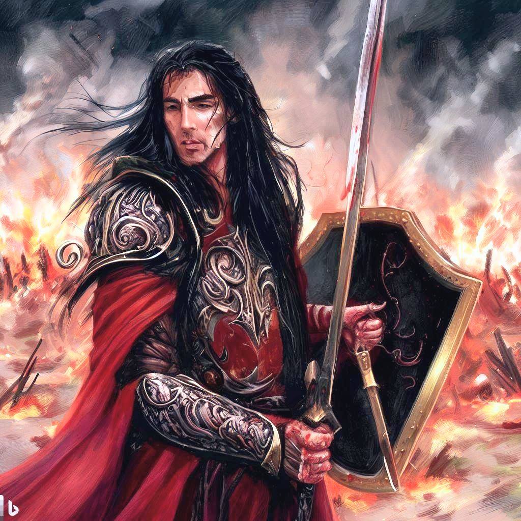 Tears are falling freely from my eyes, whether from the smoke or sorrow I no longer know. I am covered in blood, and it is not my own. This night has brought nothing but madness and awful grief. I stand before a small house, the roof burning, the acrid smoke mingling with the pall of smoke from a hundred other fires. The Haven is in ruins, the last shelter in Beleriand destroyed by our own hands. The occupants of the small house lie at my feet, and my heart nearly breaks as I look down at them. The smallest of them could have run, could have hidden. Instead he had tried to protect his mother using nothing but a small wooden training sword. I do not know why, but I picked it up from the floor, wondering if he would have grown into a warrior had he not stood against me…