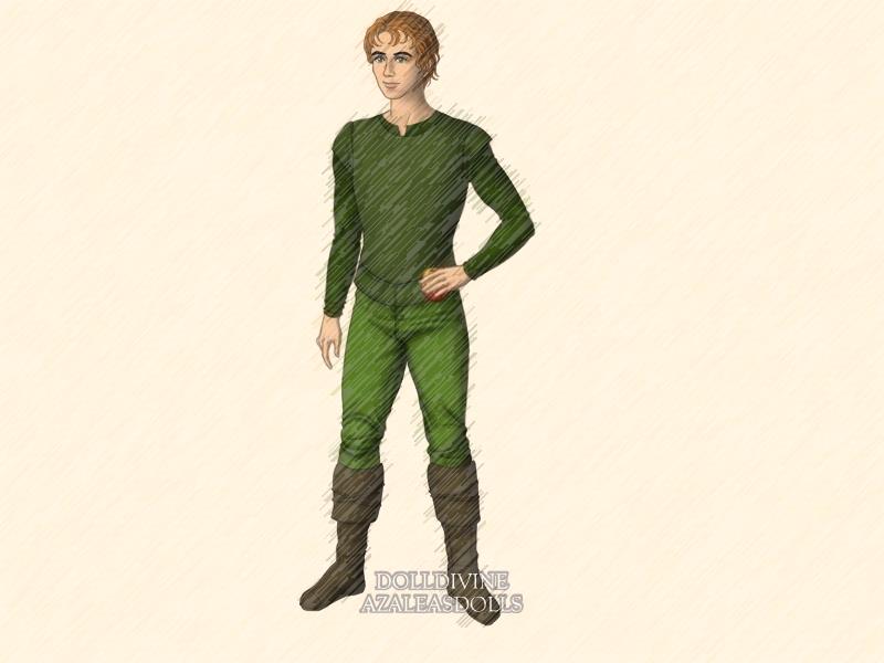 Attire - He wears rather green-coloured clothing. His usual set of clothing would be a dark green tunic, olive green tunic and soft shoes.
