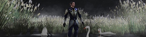 Aralphen (With the meaning ''Swan lord'' or ''Swan noble''): His Epessë under which he is known among many of the elves of Mithlond. This most likely derive from his personal crest, which takes the form of two white swans mirroring eachother upon an azure background. This crest he proudly displays upon many of his robes and shields and even his personal belongings are often shaped to assemble this, among the sea-elves, revered bird. His fondness for swans arose after the founding of Mithlond, when he came to owe two of the birds his daughters life as they alarmed him of a great danger she was in. After her rescue he would, in gratitude towards the two swans, take them to become the symbol of his persona.