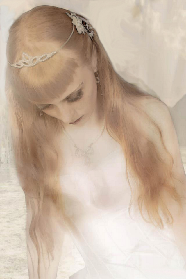 | Outward Appearance | Lhûthindë is a young Elf, white-golden hair frames her face and two dark icy crystals are her eyes. |