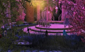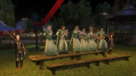 While enjoying the last summers' breeze, watching the stars come out as the sun lazily disembarked from it's high position in the sky, the rustling noises of silk dresses and tunics began to settle. It was a wonderful eve, full of the fresh and warm scents of flowers in their last bloom, the slowly dissipating warmth of the setting sun, and the murmur of excited onlookers.